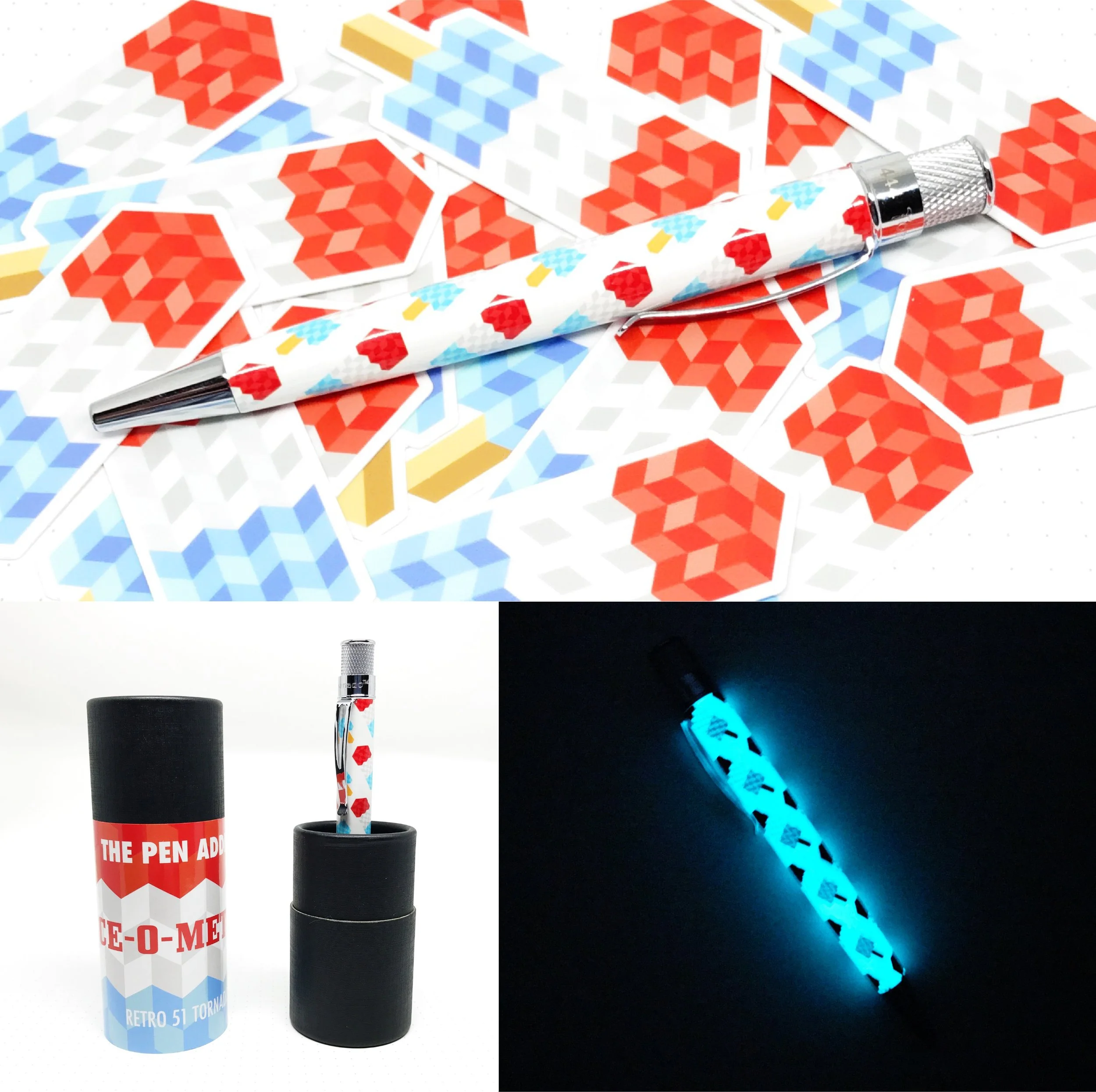 In collaboration with The Pen Addict and Retro 51, I designed this sold-out, limited edition (of 600) rollerball pen using my Ice-O-Metric design. I created a custom design for the finial and designed the label on the packaging.